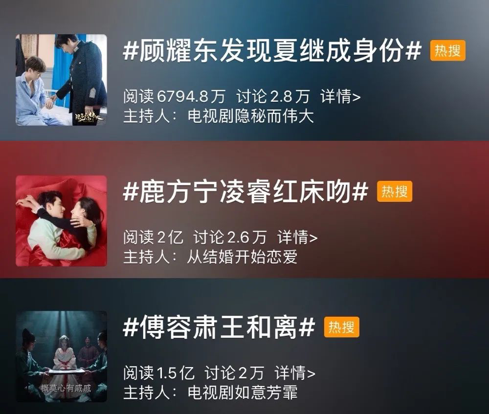 >如果是熟悉热搜的观众可能会发现,现在电视剧播出时,基本话题点都只能看到第一类,甚至主要只是剧情而已,就像史航老师炮轰的“不加标注直接剧透”的内容。我觉得这个现象一是宣传方限制越来越多,发挥空间越来越小,创意也越来越无趣,脑洞越来越枯竭;二这未尝不是观众自然选择的结果,他们更加注重剧集本身,而不再轻易被花边或者创意迷惑,所以才有自发搜索行为,导致影视作品热搜单一的结果。
