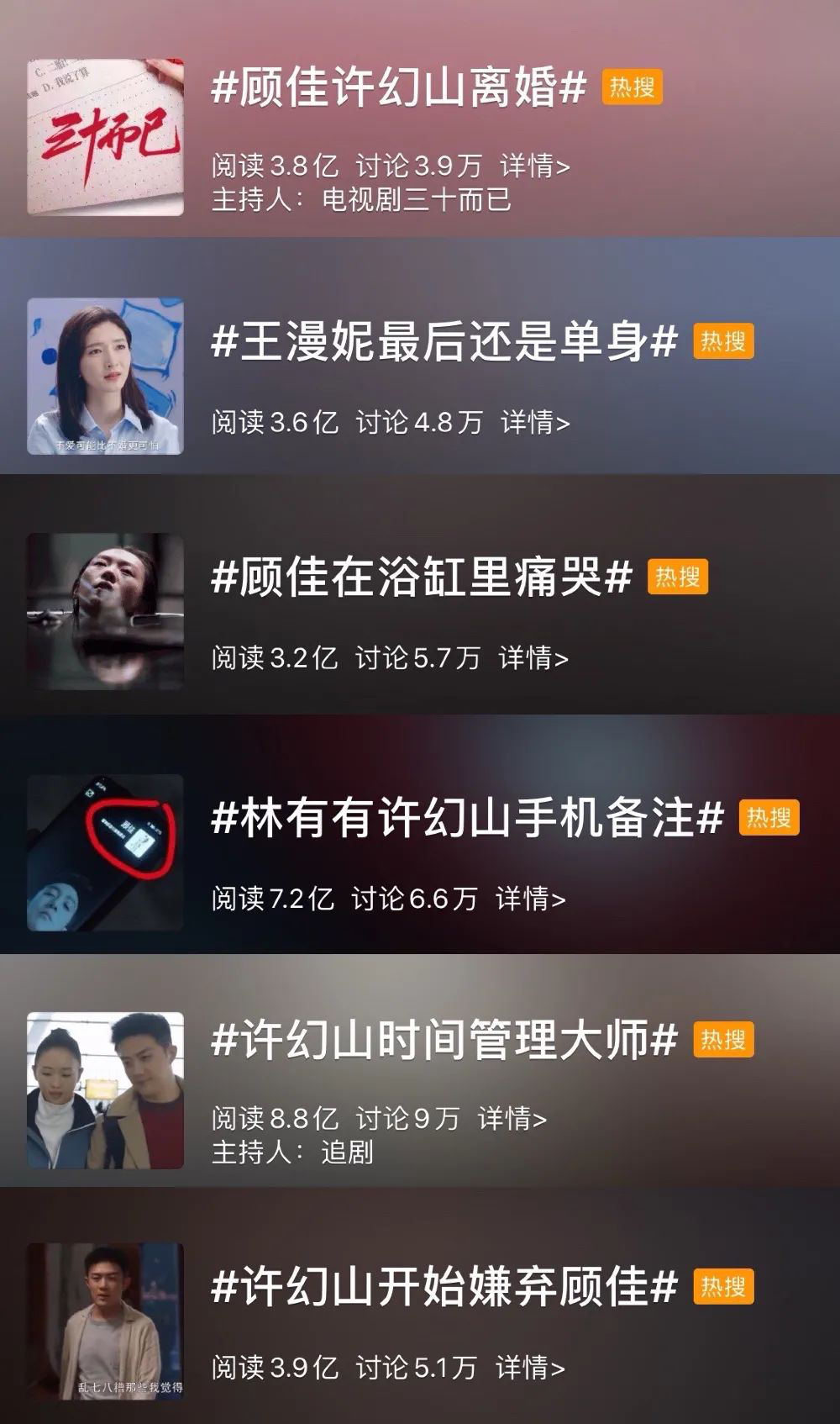 >女性题材爆款剧《三十而已》相关热搜话题一览