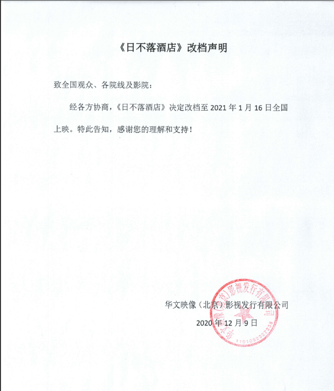 原定于本日(本周六)上映的《日不落酒店》又悄然改档到了2021年1月16日,不过,仍旧是落在了周六。