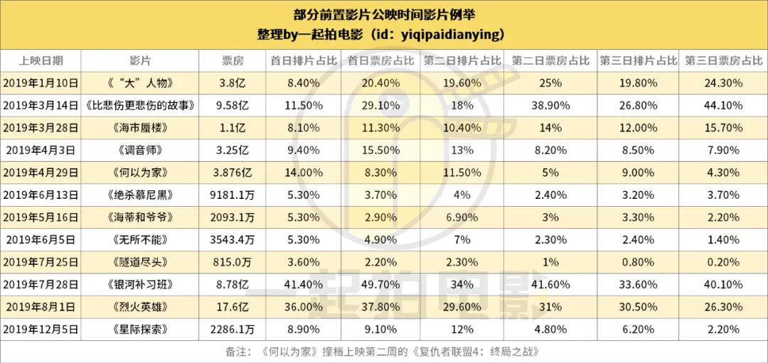 2019年《“大”人物》和《比悲伤更悲伤的故事》在比较冷门的1月和3月档期提档周四晚上18点,并且以黑马之势取得票房骄人票房成绩。许多发行方看到了周四晚场公映策略的市场潜质,于是主动定档到周四晚上18点开启公映。