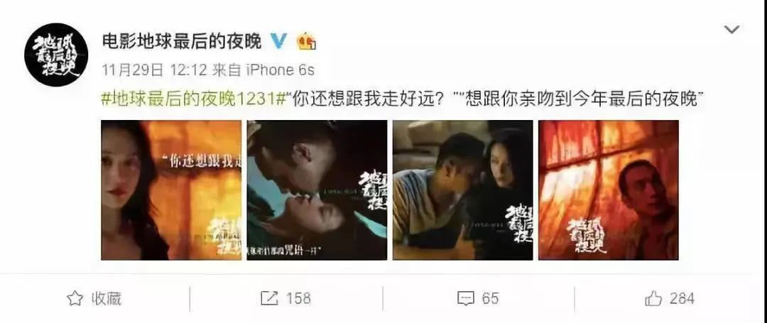 比如2017年的《前任3》,宣发方通过策划“影院观影痛哭”、“效仿电影情节吃芒果”等创意内容,选择抖音平台作为第一发酵阵地,最终使得该影片热度迅速升温;还有2018年底的《地球最后的夜晚》,最终引爆势能的还是#在地球最后的夜晚去见那个你超级超级想见的人##一吻跨年#等话题策划。