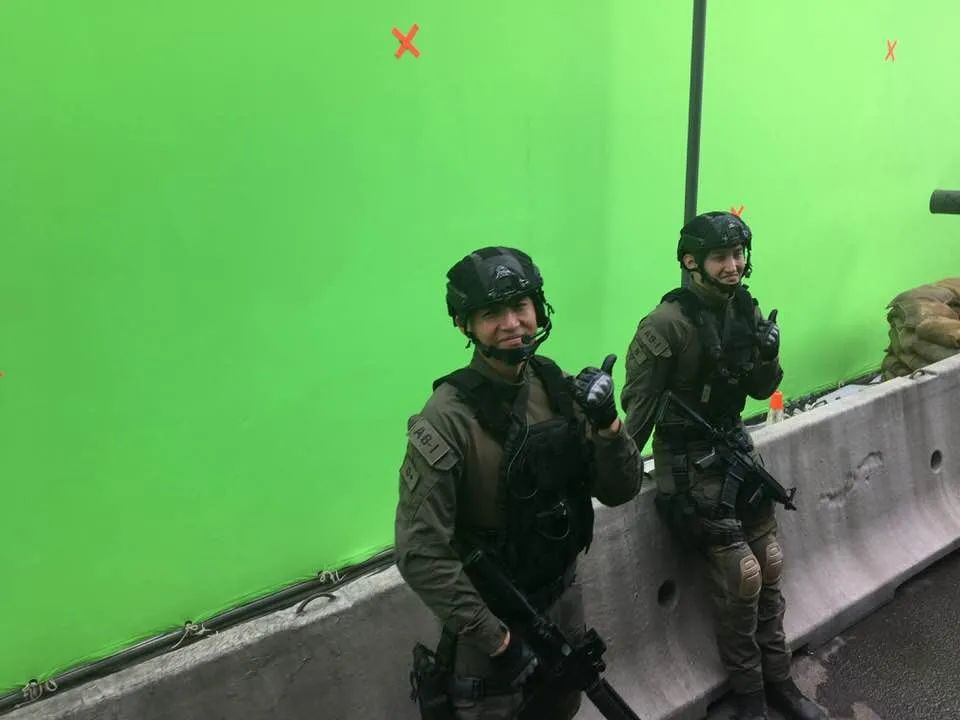 还有,拍摄现场放置了一个播音装置,声音设计师给我提供了很多音效,包括哥斯拉的吼叫还有爆炸的声音。