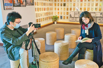 | 中共四大纪念馆的工作人员在拍摄短视频。(资料图片) |