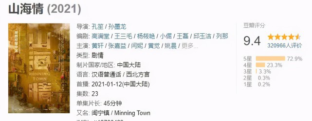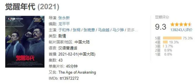我们一起看下,入围最佳电视剧奖的电视剧共有10部,分别是《大江大河2》、《觉醒年代》、《跨过鸭绿江》、《流金岁月》、《三叉戟》、《三十而已》、《山海情》、《隐秘而伟大》、《在一起》、《装台》。这十部电视剧评分在9分以上的就有2部,分别是《山海情》 9.4分,《觉醒年代》9.3分,这两部也是今年角逐最佳电视剧奖的热门作品,其次是在播出期间获得了收视与口碑双赢的电视剧《大江大河2》。不过,因为题材原因,作为主旋律主题的《山海情》与《觉醒年代》获奖的可能性更大。