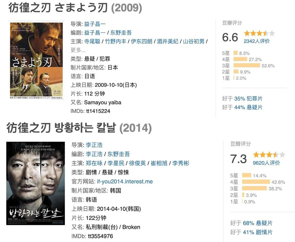 它改编自东野圭吾的同名小说《彷徨之刃》,此前已经分别于2008年和2014年有过日版和韩版的电影改编,口碑只能算一般。