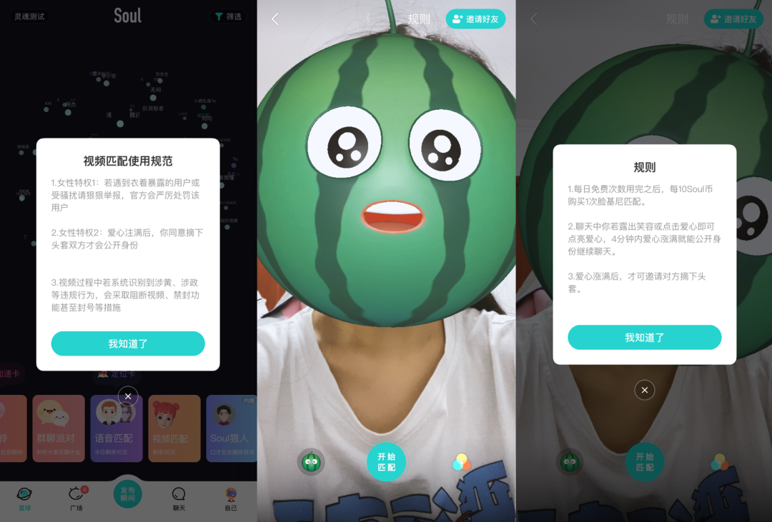 彼时,社交市场几乎所有产品都在围绕颜值、学历、财富等等安排等级序列,互动空间也比较狭窄,基本是围绕两性婚恋展开。具有树洞属性的Soul横空出世,喊响了“跟随灵魂找到你”的新口号,很快就以“不看脸”的差异化理念杀出一条生路。
