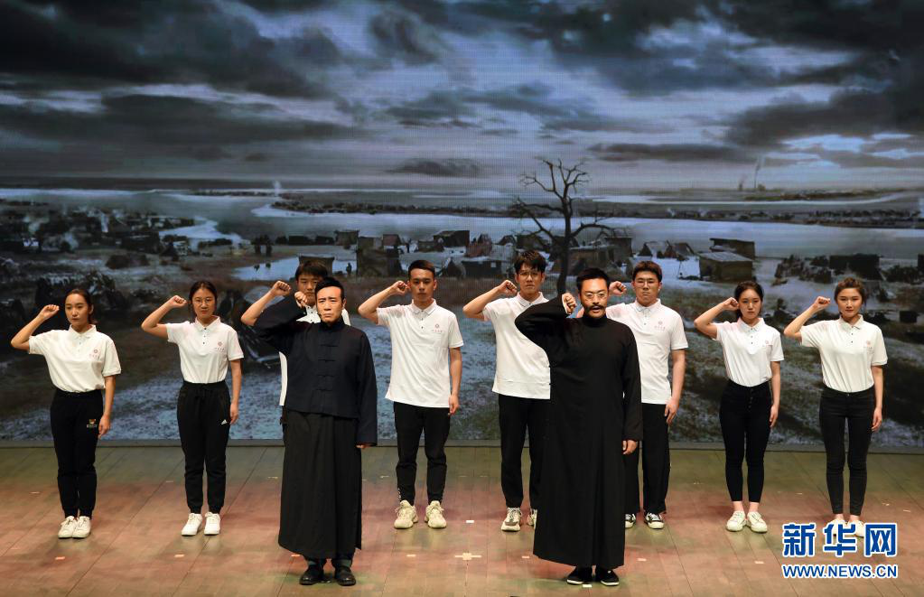 | 电视剧《觉醒年代》主创团队走进北京大学,剧中主要演员与北大学生同台演出(4月20日摄)。新华社记者 任超 摄 |