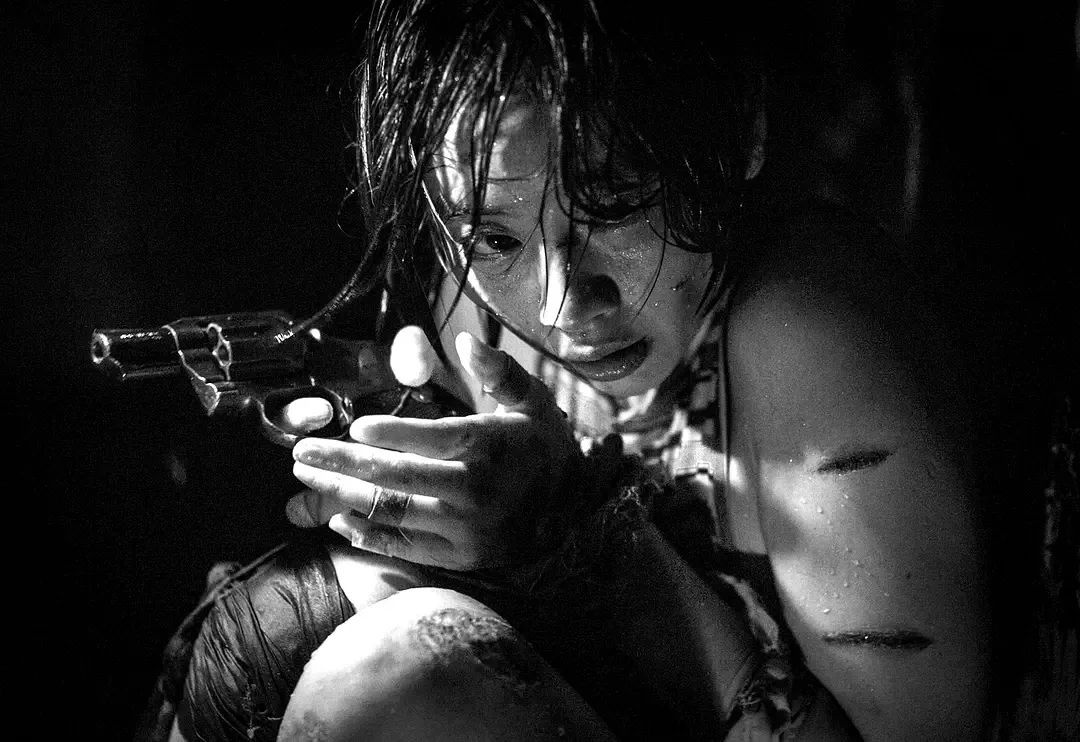 视觉观测到的色彩,同样也会牵动人的嗅觉和味觉。昆汀电影中大量血腥、暴力的镜头通过视觉感官对于受众进行刺激的同时,镜头中展现的鲜血的“红色”以及街景的杂乱颜色也在嗅觉和味觉层面使得观众“身临其境”,感受到“铁锈味”、逼仄与残酷。然而黑白的调色则彻底隔绝了这一层味觉的感应,将电影从冗杂的场景与色彩中解放,仅仅用“黑”与“白”这两个色彩的极点,玩转一场信息量爆棚的光影游戏。