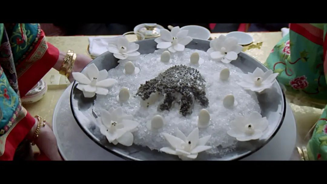 1996年周星驰的《食神》就将烹饪和功夫完美无缺地结合在了一起,主角史蒂芬•周为了增进自己的厨艺还到少林寺修行了一番,片中主角进行厨艺比拼时还总是用厨具或是内力相互攻击。功夫元素的渗入,大大增强了中国烹饪的奇观化,而这一趋势早在1995年的《金玉满堂》就已有所体现。