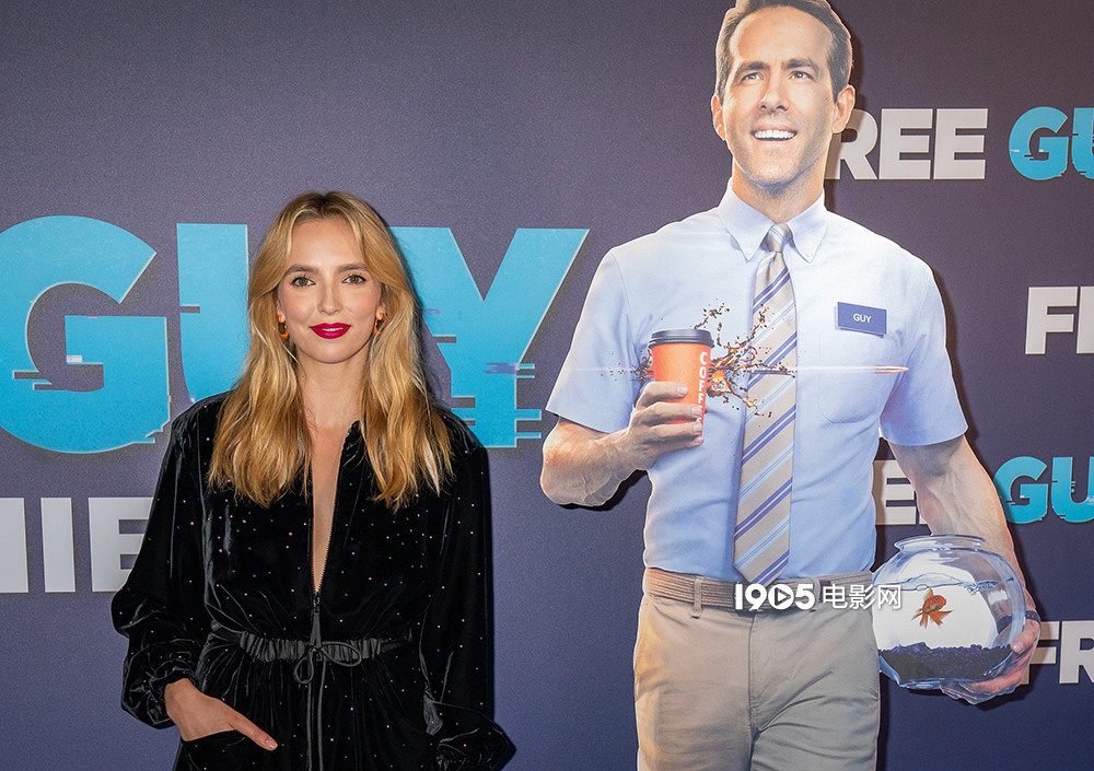 现场,一袭黑色深V连体裤装亮相的朱迪·科默尽显优雅率性,她还与未到场的男主角瑞安·雷诺兹的人形立牌玩起合影,堪称“最萌身高差”。