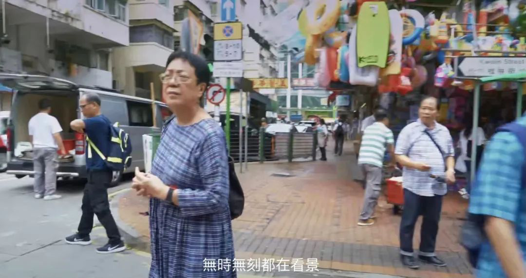 镜头随着她走在香港的大街小巷,眼睛滴溜溜的转,无时无刻不在勘景。