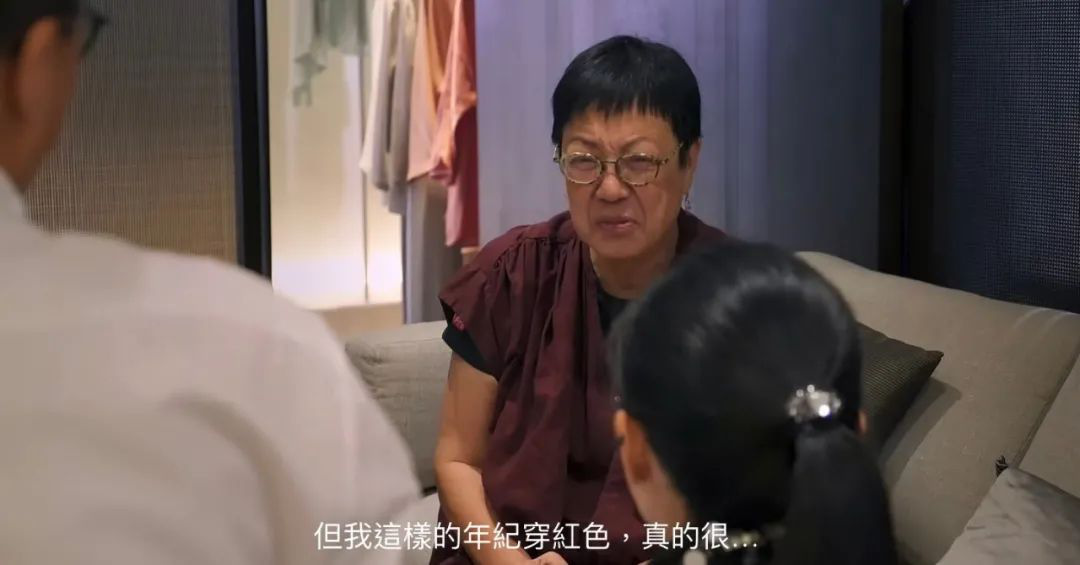 在赞助商推荐的礼服中,明明想选红色,却要先用开玩笑的语气“自谦”一句,“我这把年纪穿红色不好吧”。