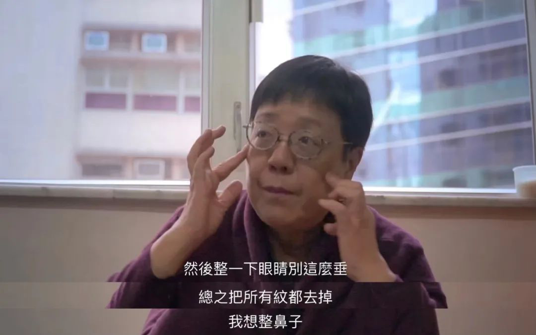 在这部纪录片中,我们能看到许鞍华居然也有所谓的“容貌焦虑”。她会认真地说自己要把鼻子垫高一点,去掉不喜欢的法令纹。