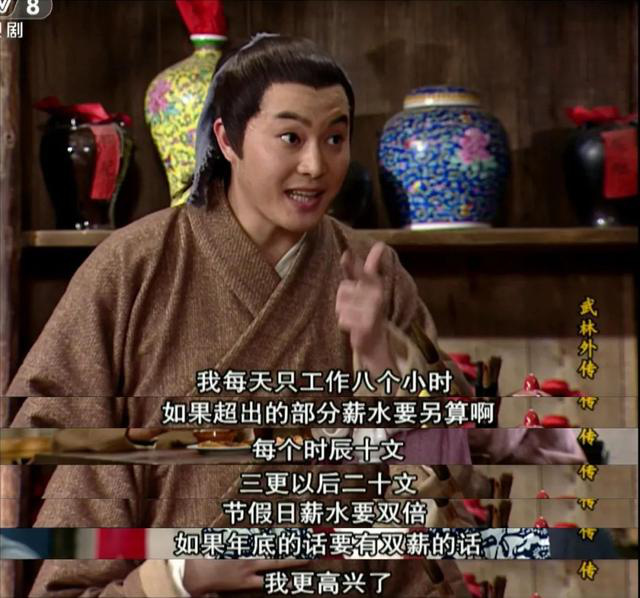 在其换号黄豆豆进入客栈后,面对佟掌柜种种刁难时,更明确要求加班费,不给资本家留下任何压榨余地。