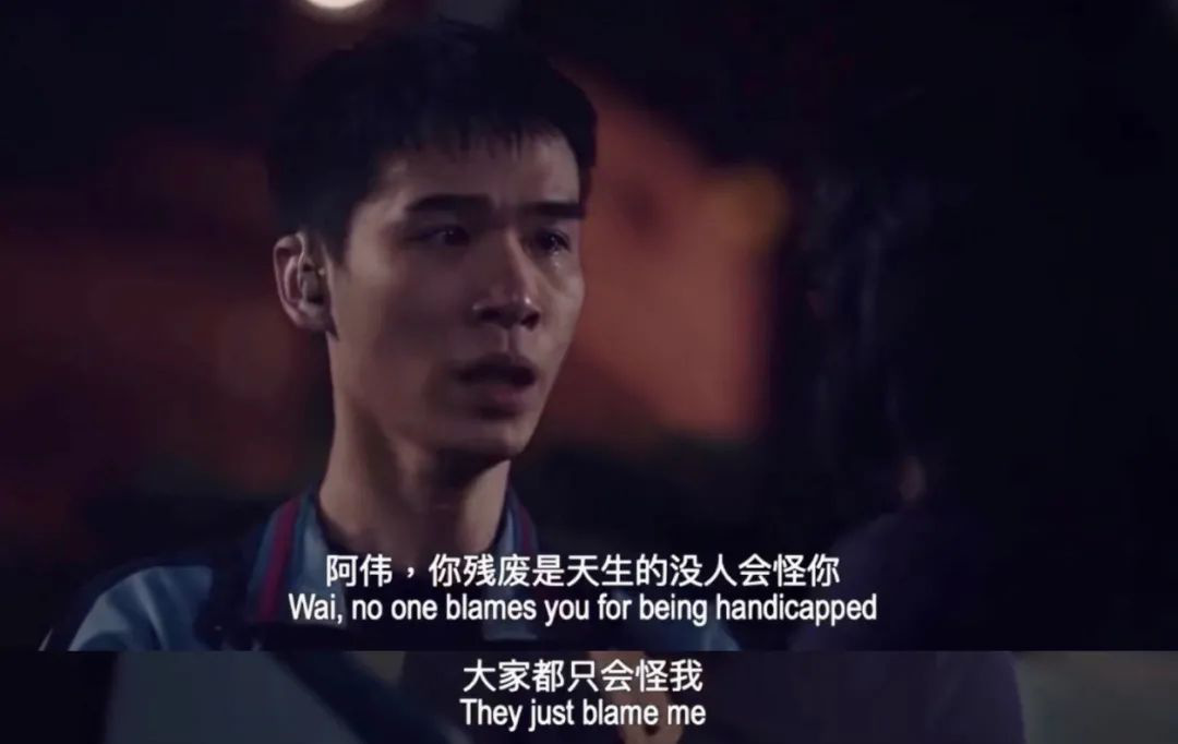 工作车间,苏妈因为残疾儿子受到不少恶言恶语,这些苏桦伟在幼儿时遭遇的恶意,在苏妈的心中牢牢生根。她不止一次想到,与其没有尊严地活着,不如和儿子一同去死,但苏桦伟在传送带上扶着栏杆站起来的瞬间,让苏妈重拾那一丁点希望。