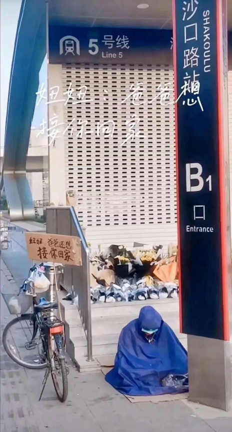 爸爸估计是不肯接受女儿离世的事实,跑到地铁口坐了一夜。