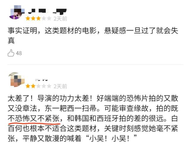 开篇的悬念迭起惊悚刺激全部被后续的拉垮盖掉,警察与凶手或许是巧合的两次碰面,看得出是为了剧情推进制造高潮,但也显得有些牵强。全片营造恐怖氛围全靠配音和声效,这一点从观众广泛吐槽的“吵”也能看出。