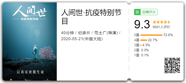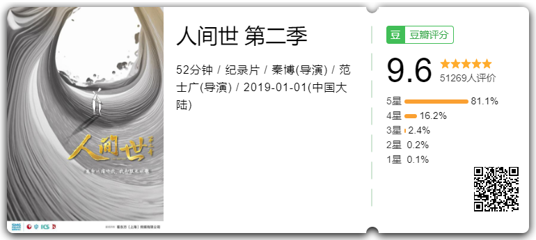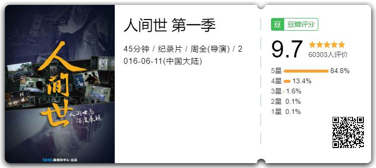 图片上的来源揭示了系列纪录片的名字,它就是《人间世》系列,豆瓣均分高达9.5。