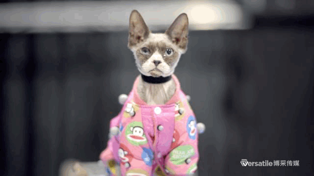 这件有点可爱的粉色动捕服,就是他们为猫主子亲手缝制。
