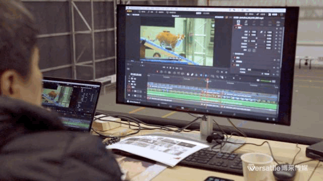 为让数据人员更高效地执行导演想法,导演与剪辑先用侧拍素材拼接出大小老虎的表演。