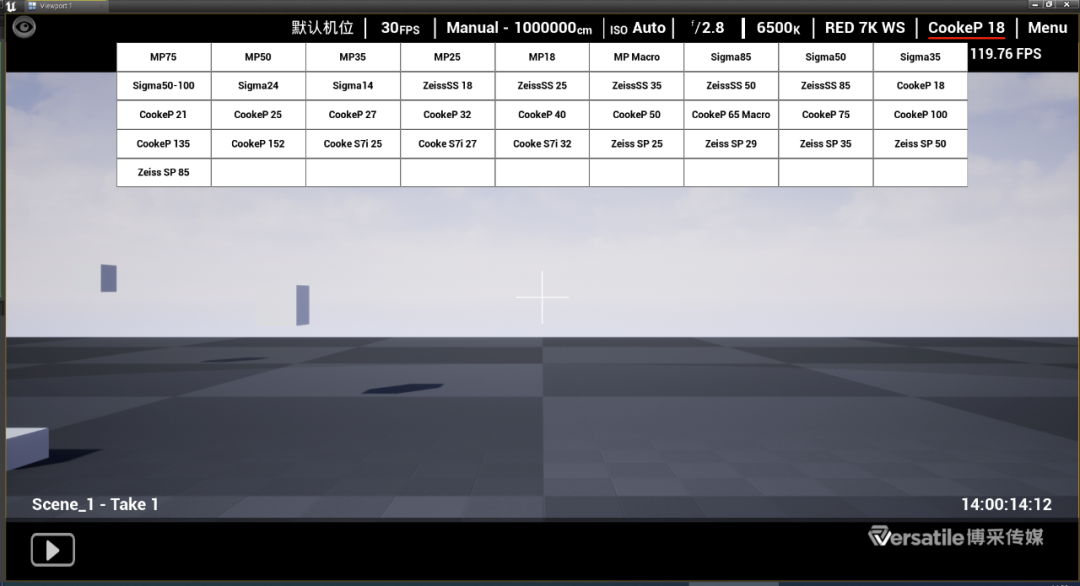 通过在UE里切换用摇臂模式的虚拟相机蓝图,可以使用伸缩炮功能拍摄。