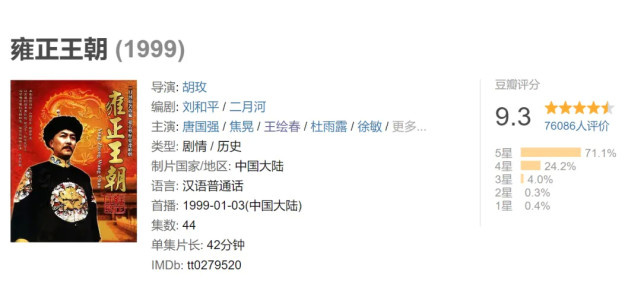 《雍正王朝》是一部在豆瓣上有着9.3分的高质量作品,塑造了一代人对于宫廷政治的认识。王绘春在剧中扮演的八爷是一个空前绝后的伪君子,他的心机和虚伪得到了生动的表现。