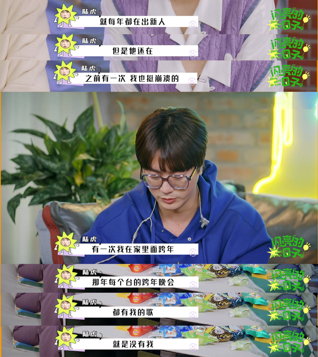 >出道十多年,陆虎一直在写歌,一直歌火人不火。直到今年录制《闪亮的日子》才第一次开了自己的个人演唱会。节目现场他嚎啕大哭。