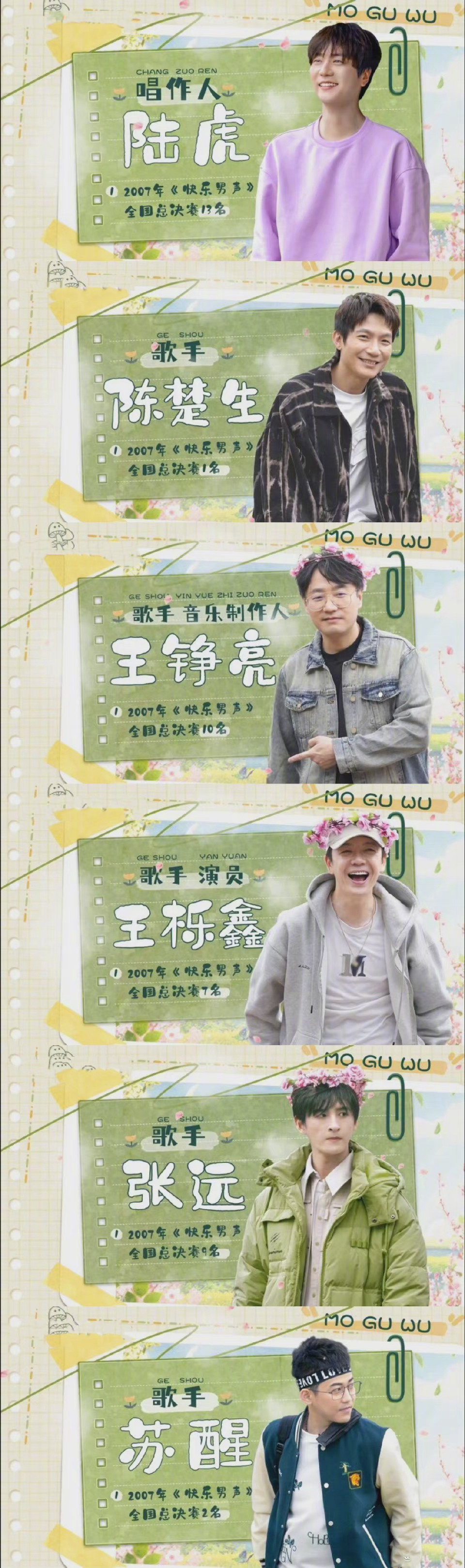 >本是为新一季《向往的生活》预热的衍生综艺,短短5期,芒果TV会员专享,却凭借陈楚生、苏醒、王栎鑫、张远、王铮亮、陆虎(此处按《2007快乐男声》最终名次顺位)之间独特的化学反应催生出强烈的综艺效果。