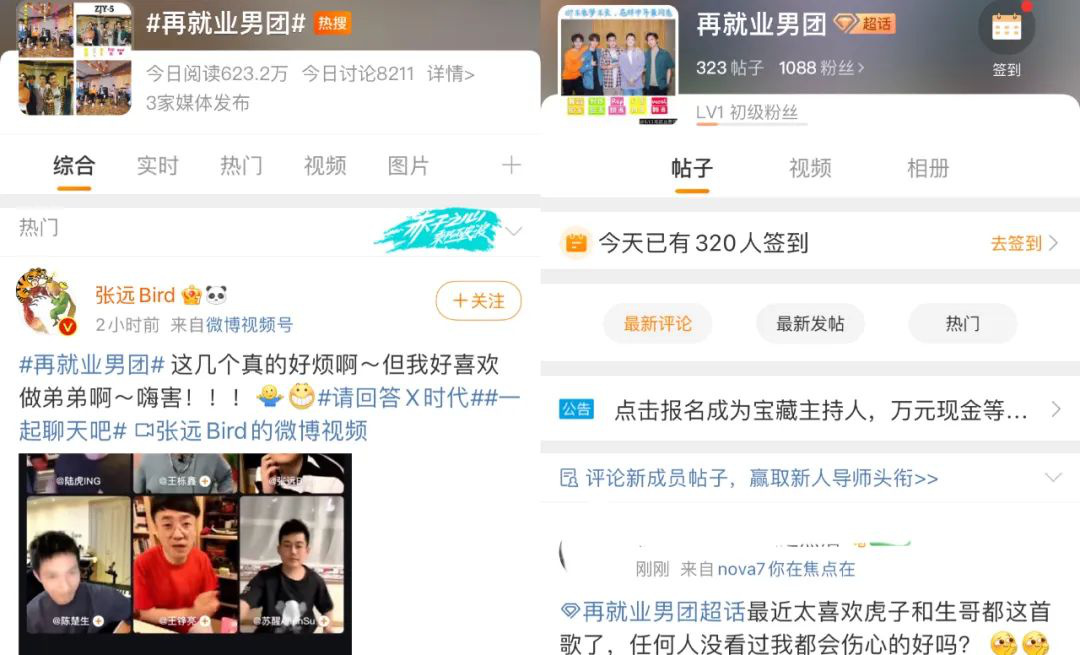 >如今,节目、艺人每天都有热搜在榜,喜欢他们的粉丝甚至为其创建了“再就业男团”微博超话,赵林林和六位艺人的经纪团队也拉了一个群,群名叫“快男团综gkd”。