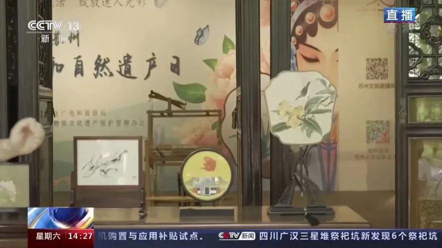 △2022年“文化和自然遗产日”期间,苏州策划了60多项线上+线下非遗活动。6月11日当天,央视新闻在拙政园全程直播了一场活动,以缂丝为笔,书写苏州非遗精彩故事