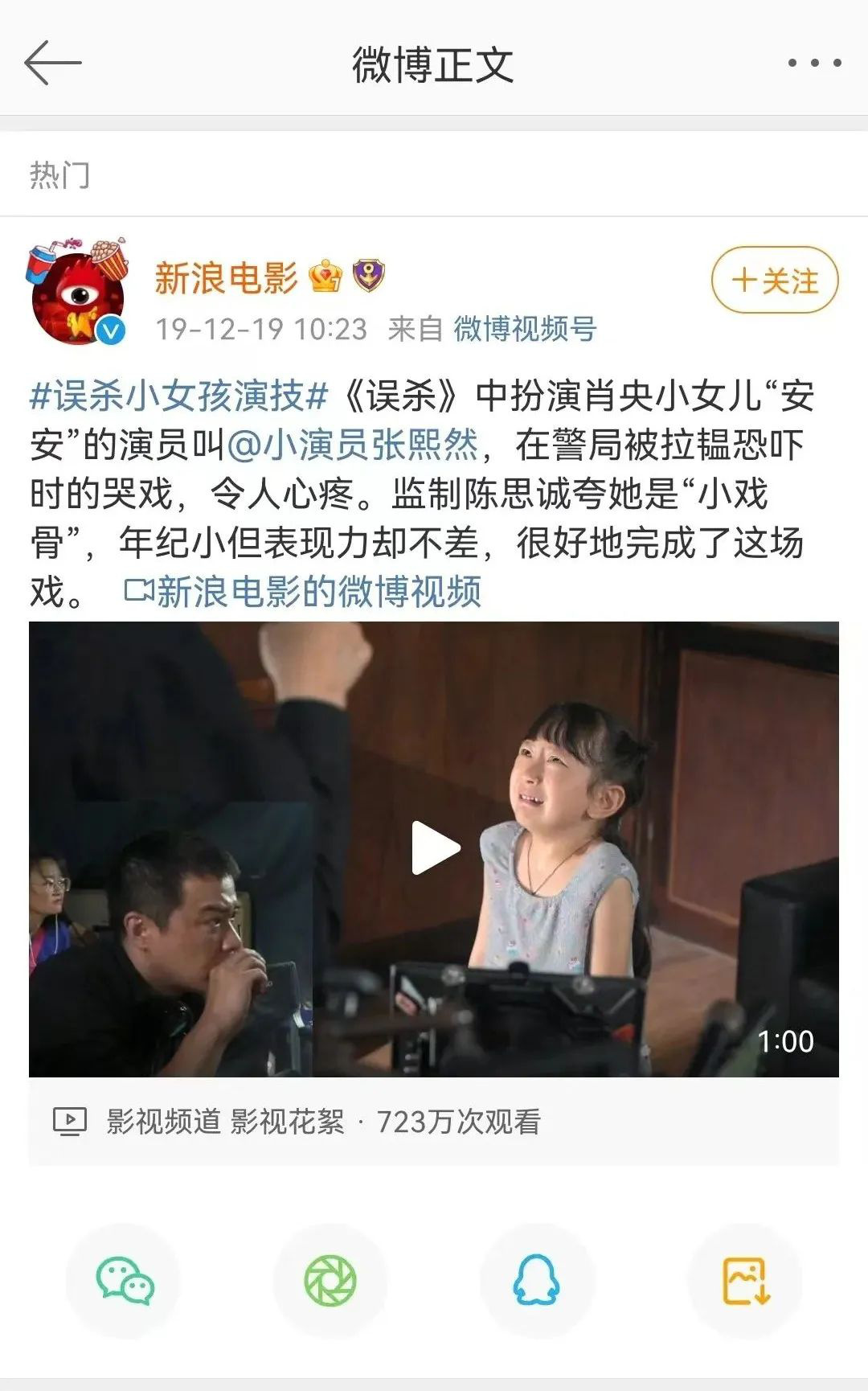 2020年电影《误杀》上映时,扮演安安的陈熙然凭借与陈冲的一场对手戏让观众惊艳不已,电影上映期间#误杀小女孩演技#频繁登上热搜。
