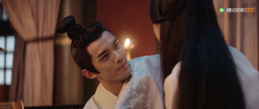 显然费振翔导演更倾向于后者。在这一大方向下,《星汉灿烂》中凌不疑的形象其实恰与角色心境相符,彼时他身为年轻将军又身负血海深仇,这时的画面风格显然更合乎影视叙事逻辑,而随着凌不疑与程少商相识相知而逐渐转变,剧中的运镜和光线选择也明显有所变化,比如38集中凌不疑因为程少商而被皇帝处罚受伤,两人在室内相处的画面就全是和煦暖光了。