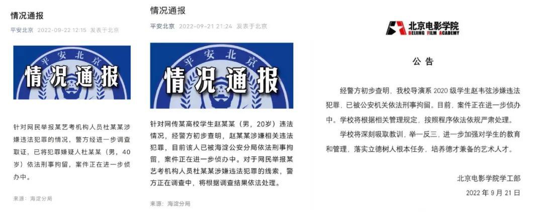 北京电影节学院也发布声明称,学校将根据相关管理规定,按照程序依法严肃处理。