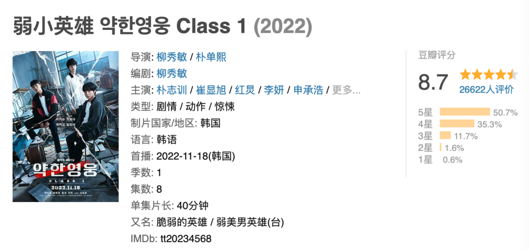 事情是这样的,最近有一部叫《弱小英雄》的韩剧,评价相当之好。