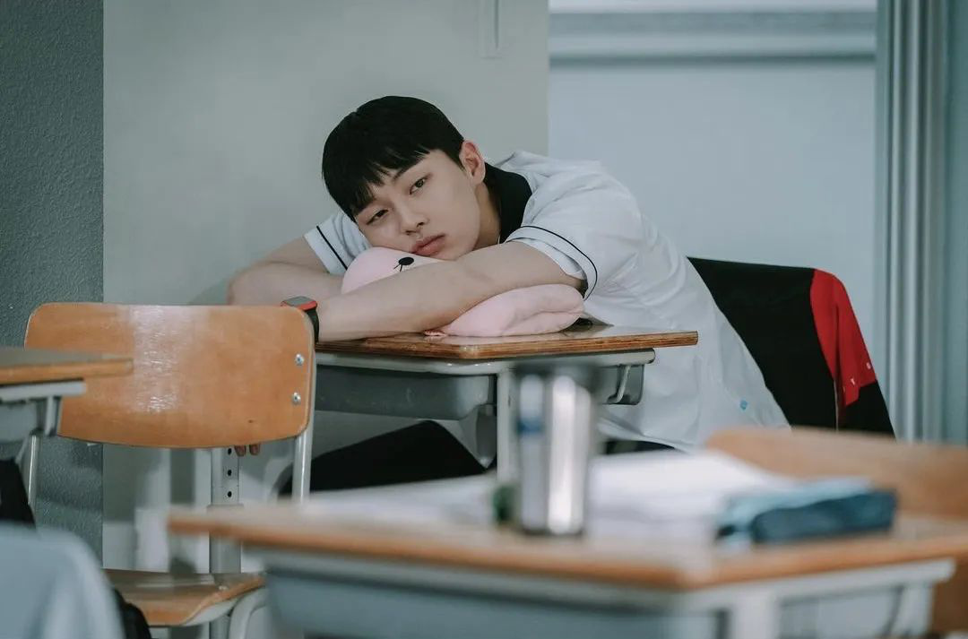 男二号是总坐在教室后排睡觉的差生。