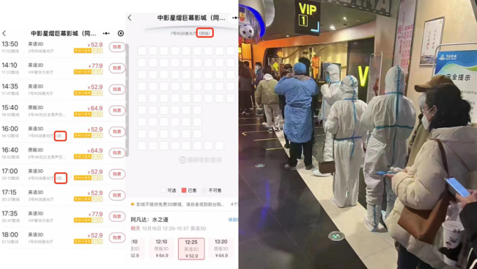 针对前两种情况,有的影院想出了“奇招”应对——开辟了“阴阳”场。观众在平台上购票时,可以根据自己身体情况购买标记阴或阳的电影场次。当然,也有观众自行解决此事,买了全套大白防护服去影院看电影。