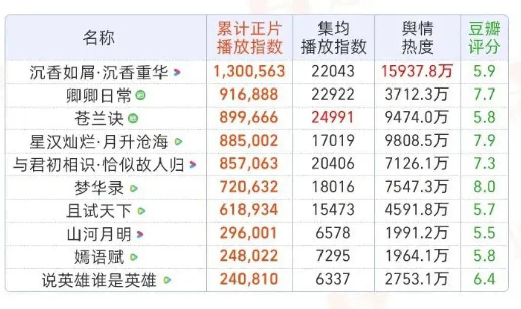 古偶剧领跑年度网剧前五,