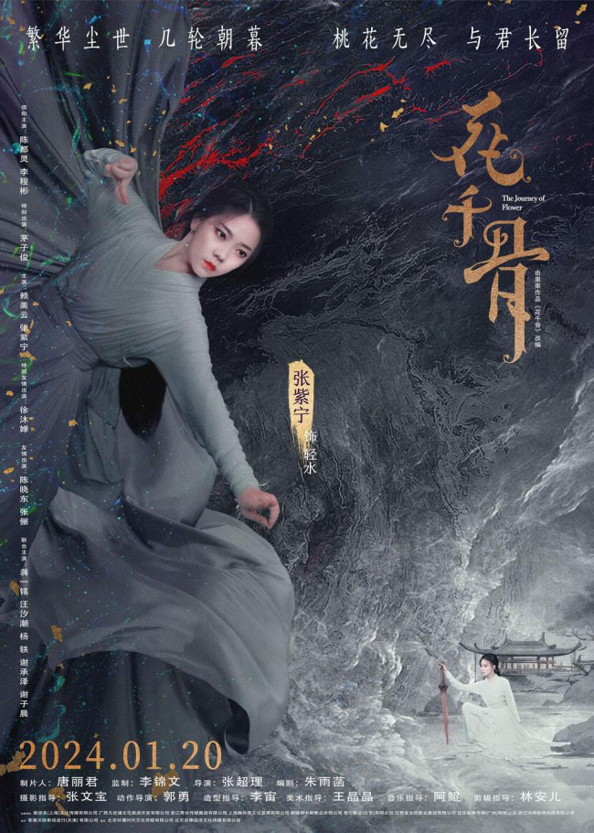 电影《花千骨》由唐丽君任制片人、李锦文任监制、张超理任导演、朱雨菡任编剧、张文宝任摄影指导、郭勇任动作导演、李宙任造型指导、王晶晶任美术指导、阿鲲任音乐指导、林安儿任剪辑指导,影片将于1月20日正式上映,敬请期待这段充满浪漫主义色彩的奇幻爱情故事。
