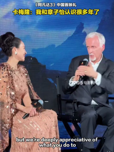 《阿凡达3》中国首映礼 卡梅隆:我和章子怡认识很多年了